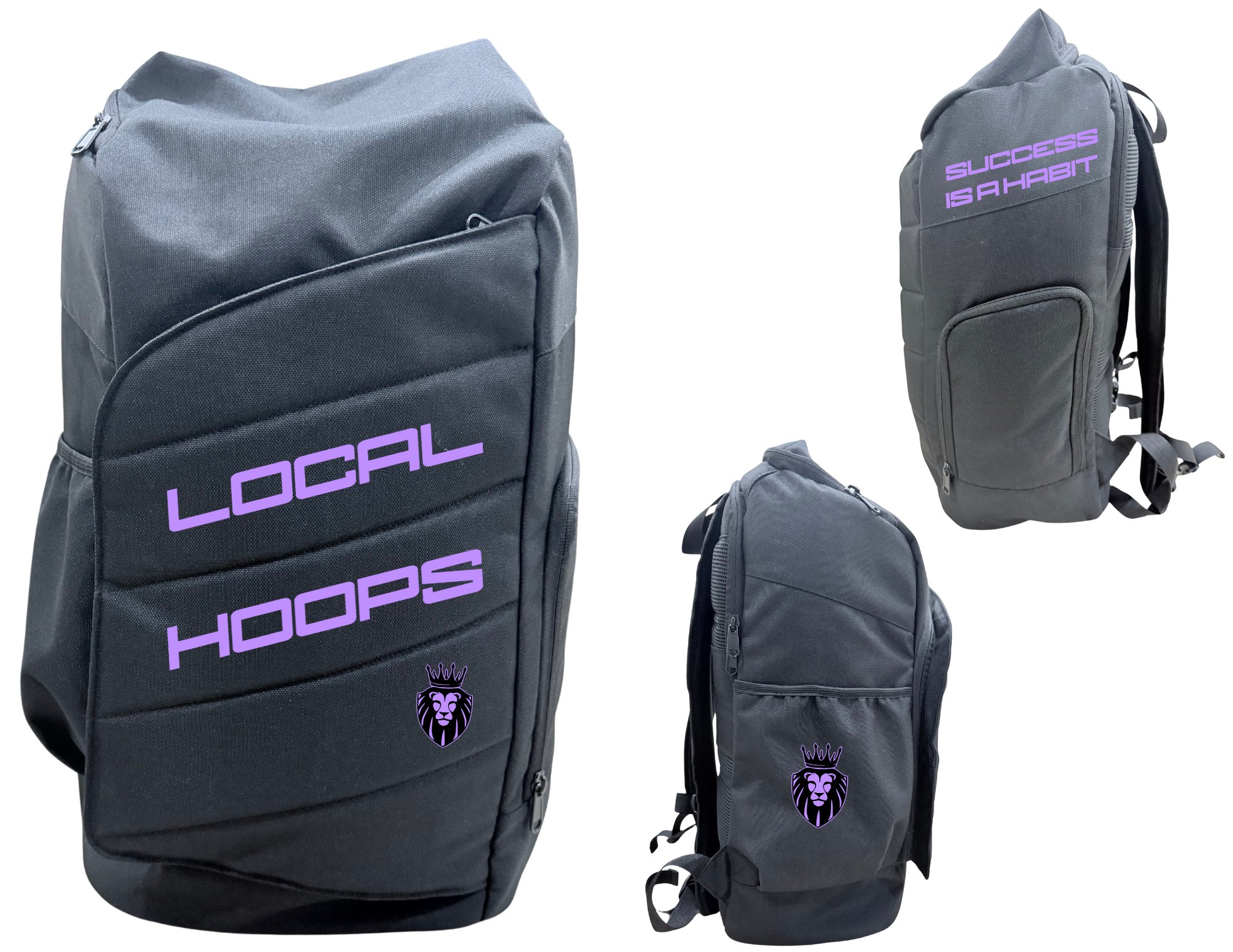 Big opening top to fit shoes, basketball and clothesSide pockets for water bottlesZipper front pocket to secure personal items